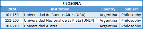 La Universidad Austral ha sido nombrada como una de las mejores universidades del país para el estudio de cuatro disciplinas en la edición más reciente del QS World University Rankings by Subject: Derecho y Medicina, por 6 años consecutivos, y Negocios y Management, por 3 años, gracias a la formación en grado y posgrado. Y también con la flamante incorporación en la disciplina de Filosofía, que se suma por primera vez a este ranking, que reconoce la investigación desarrollada en el Instituto de Filosofía, cuyo prestigio y reconocimiento es internacional.Para su rector, Mag. Julián Rodríguez, “la complejidad de la realidad en nuestro país, y en un mundo alterado por múltiples conflictos, está pidiendo un compromiso mayor a todas las universidades. Cada institución académica puede aportar a la mejora de la sociedad desde las disciplinas científicas en las que se destacan sus docentes e investigadores. La Universidad Austral contribuye en varios campos que son reconocidos por los rankings internacionales como el QS by Subject”.Con la incorporación de Filosofía, la Austral se consagra como la universidad de gestión privada que más disciplinas lidera en el país. La directora del Instituto de Filosofía, Dra. Claudia Vanney, expresa el orgullo institucional que representa este ingreso: “Desde nuestro Instituto se promueven investigaciones interdisciplinares de filosofía en diálogo con las ciencias y con la teología. Haber ingresado a este ranking es una sorpresa y una alegría porque manifiesta que la calidad de la investigación que desarrollamos y que los esfuerzos puestos en la formación de investigadores de América Latina han alcanzado reconocimiento internacional”.
