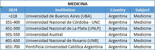 La Facultad de Ciencias Biomédicas (FCB) también vuelve a instalarse también como la primera de gestión privada en la disciplina Medicina por seis años seguidos.“El plan de estudios de nuestra carrera de Medicina se estructura sobre una sólida una formación humano-científica y profesional donde cada alumno cuenta con la posibilidad de experimentar el contacto con el paciente gracias al estrecho vínculo con el Hospital Universitario Austral y la posibilidad de integrarse en forma temprana en proyectos de investigación dentro del Instituto de Investigaciones en Medicina Traslacional. El ascenso de la carrera de Medicina en su posicionamiento en este ranking internacional es un reconocimiento a los profesores e investigadores de nuestra Facultad por su notable desarrollo en su trabajo de cada día”, considera el decano de la FCB, Dr. Guillermo Mazzolini.