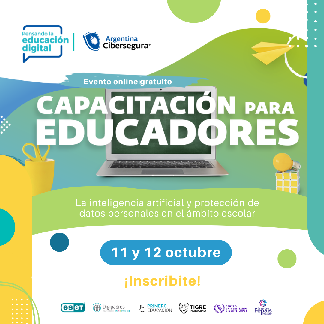 Pensando la educación digital, el evento anual de Argentina Cibersegura, Asociación Civil cuyo objetivo es concientizar a la comunidad sobre el uso responsable de Internet y las tecnologías, invita a sumarse a su edición online, los días miércoles 11 y jueves 12 de octubre y participar de diferentes conversatorios y paneles para reflexionar sobre el uso de nuevas herramientas digitales.